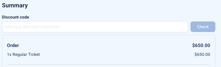 Each event, course or program has its’ own unique discount code. Please make sure you are logged into your member account and navigate to the individual page for the event, course or program. A discount code will be shown on that page that you can copy into the payment form, which has an area for discount codes like the example below.